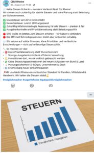 Die CDU Rheine behauptet auf ihrer Seite, dass es nach der Kommunalwahl keine „Steuerschocks“ für die Menschen in Rheine geben werde. Gleichzeitig wirft sie uns, den Bürgern für Rheine (BfR), vor, wir würden Schreckgespenster malen und blieben konkrete Antworten schuldig.
